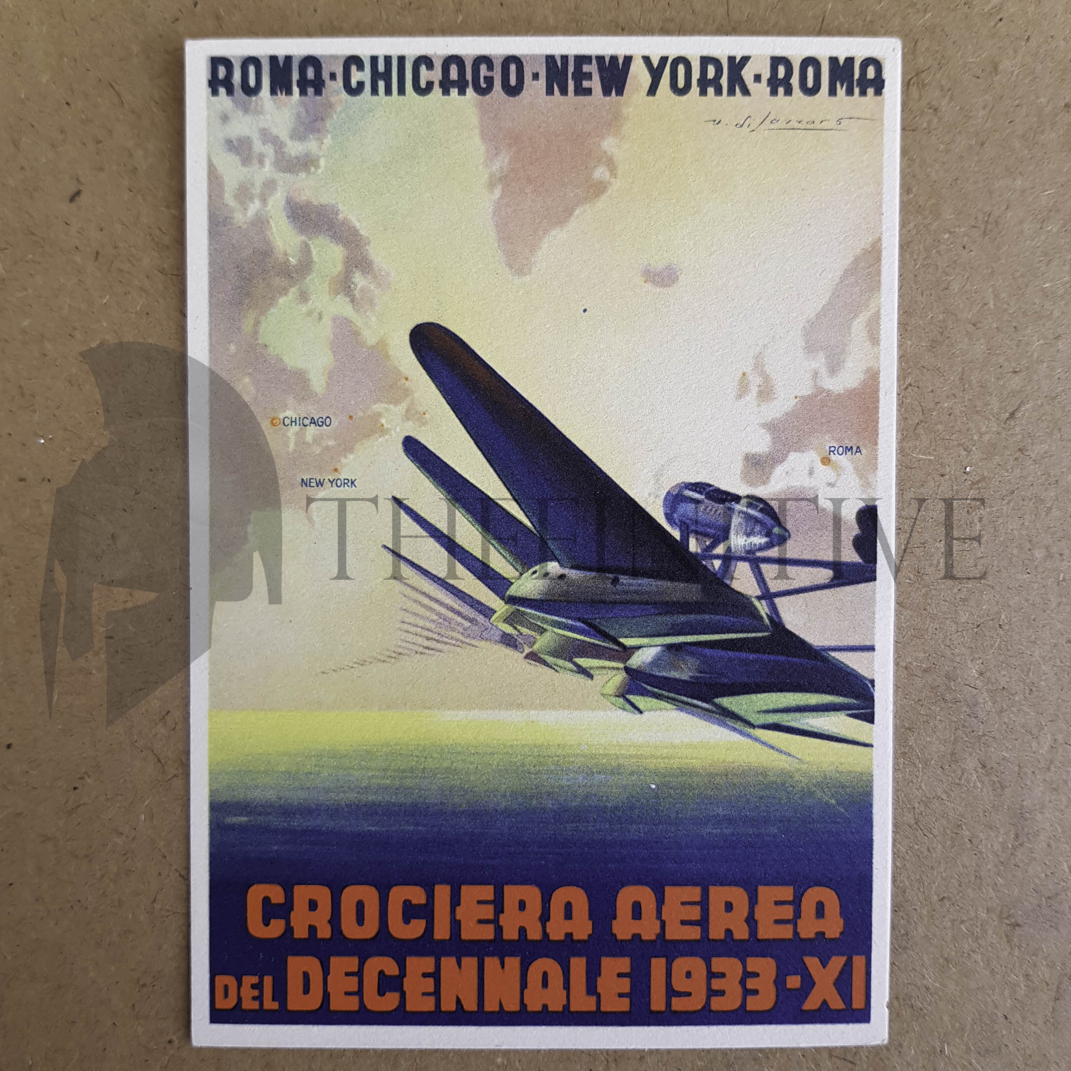 L’idea di una seconda trasvolata risale ai mesi immediatamente successivi alla crociera aerea transatlantica Italia-Brasile. La prima idea proposta da Balbo è quella di una circumnavigazione del globo, poi abbandonata per i costi e per le difficoltà rappresentata dalla situazione tra Giappone e Unione Sovietica. La seconda scelta è rappresentata dall’esposizione universale che si sarebbe tenuta a Chicago nel 1933 (tappa evidenziata sul distintivo della Crociera Aerea del Decennale)