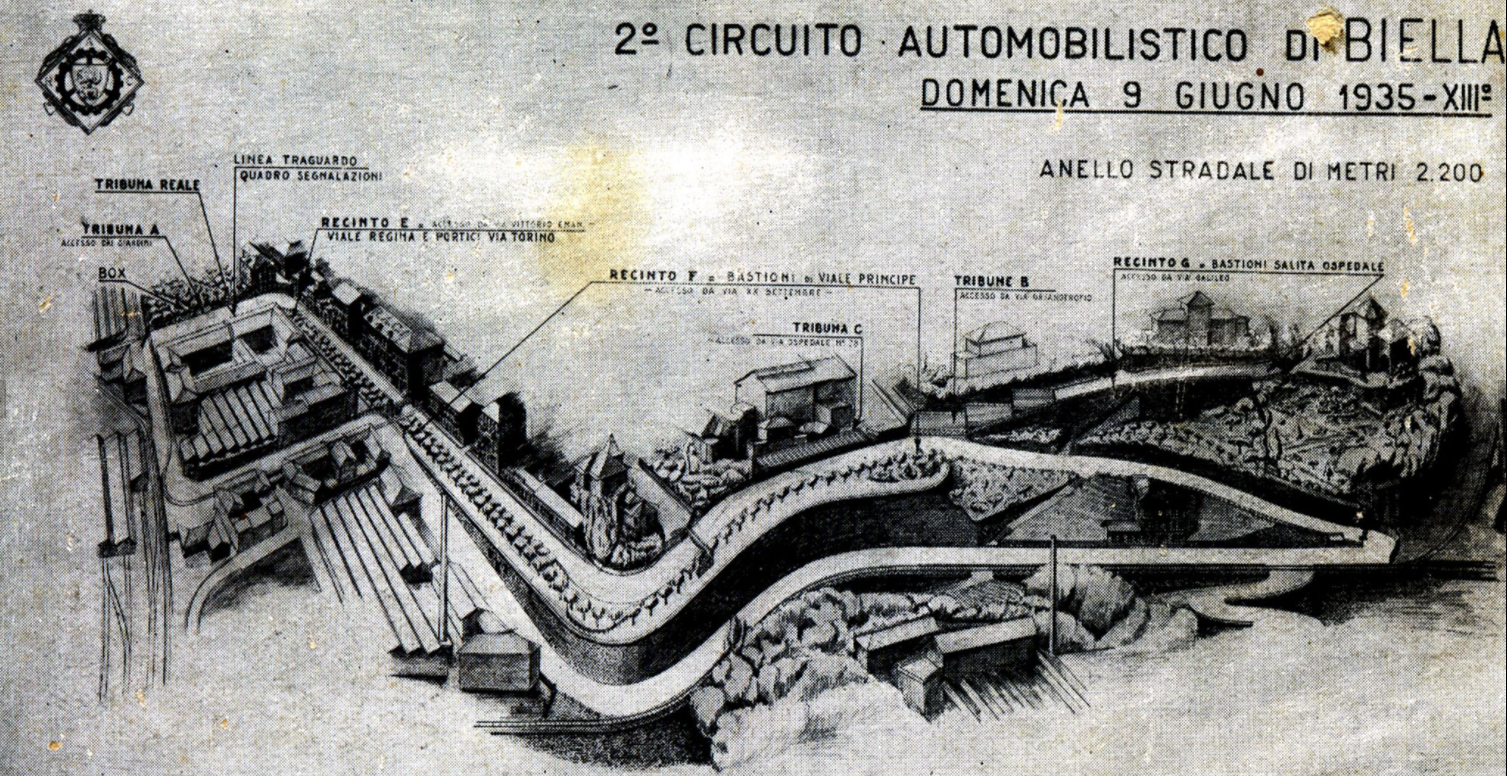 Nel 1934 e nel 1935, il pubblico biellese assistette allo spettacolo di un Gran Premio automobilistico lungo le vie cittadine. Il principale sostenitore dell’idea di organizzare a Biella un circuito per auto da corsa era stato il presidente del locale Auto Club Adolfo Rivetti.